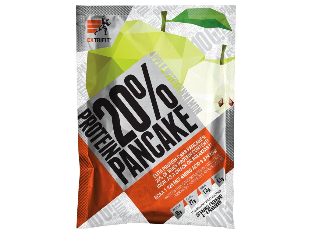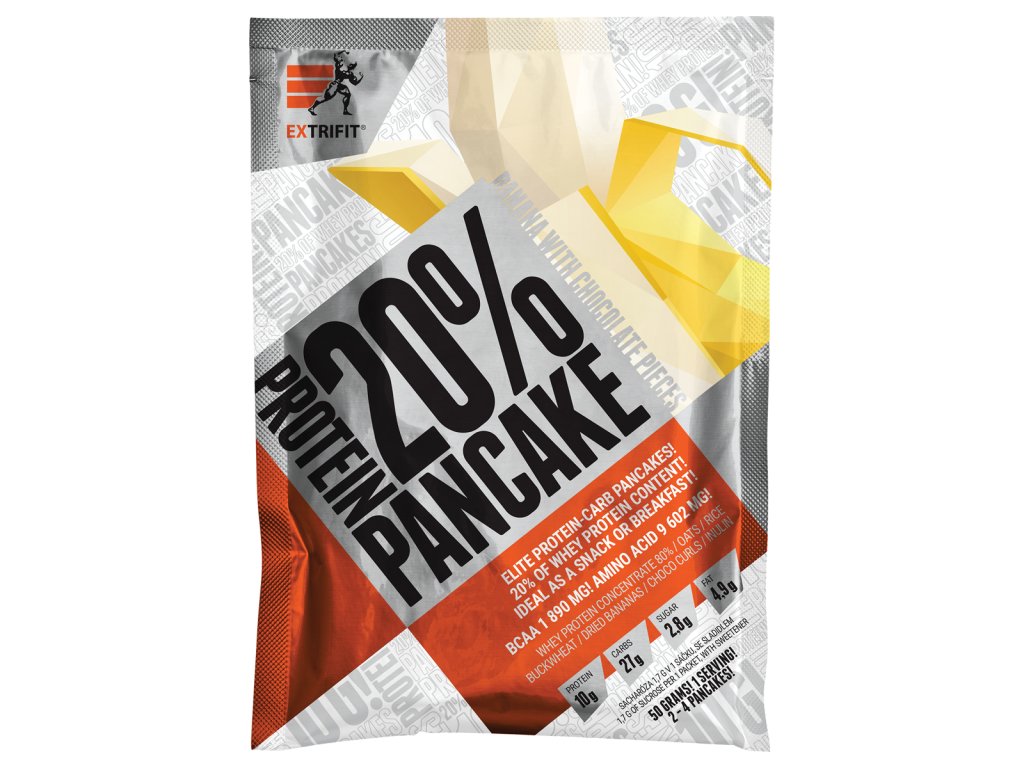 Přednosti: proteinovo-sacharidová palačinka ze zdravých, přírodních surovin pohanka, rýže, oves vláknina z kořene čekanky syrovátkový (whey) protein 80% 10 g bílkovin a 1900 mg BCAA v každé palačince 24 – 27 g komplexních polysacharidů s nízkým glykemickým indexem pouhé 1-3 g jednoduchých cukrů! Proteinovo-sacharidové palačinky Extrifit® Pancake 20 % jsou opravdovým proteinovým jídlem, které Vás výborně zasytí a které si doma jednoduše uvaříte. Proteinové koktejly jsou fajn, o jejich přínosu pro růst svalové hmoty není třeba diskutovat, ovšem velice často máte po nich brzy hlad a začne Vás honit mlsná. Přeci jen nezaplní Váš žaludek dostatečně, zejména v období diety. Proteinovo-sacharidová palačinka Pancake 20 % toto řeší. Skutečně si uvaříte. Žádná náhražka jídla, ale opravdové a dietní jídlo a příjemné, avšak nijak náročné vaření. Vynikající dietní hodnoty a báječná chuť palačinek. Proteinovo-sacharidové palačinky od Extrifit jsou ideální pro ty situace, kdy potřebujete tělu dodat kombinaci kvalitní bílkoviny a kvalitních komplexních sacharidů. Mají úžasné komplexní složení a dokonalé zastoupení živin. Kombinace pohanky, ovsa, rýže a syrovátkového 80% proteinového koncentrátu tvoří plnohodnotné jídlo s ideálním zastoupením bílkovin a sacharidů. Uvedené suroviny jsou doplněny o inulin z kořene čekanky, vlákninu s prebiotickým účinkem. Použité přírodní suroviny: Pohanka je výživově velmi cennou potravinou (není obilovinou, jak se občas lidé domnívají). Jde o jednoletou rostlinu z čeledi rdesnovitých. Neobsahuje lepek, proto se v posledních letech těší stále větší oblibě. Je skvělým zdrojem komplexních sacharidů, dále obsahuje okolo desíti procent bílkovin a malé množství tuku a také velké množství vitamínů, minerálů a rutinu, látky, která podporuje vstřebávání vitamínu C a má vliv na kvalitu cév. Pohanka působí také pozitivně na funkci trávicího systému. Inulin (vláknina) je zásobní látka, která se vyskytuje v řadě rostlin. Inulin se nejčastěji získává z kořene čekanky a používá ve formě jemného bílého prášku. Patří mezi tzv. nestravitelné oligosacharidy, takže nemá žádný energetický obsah. Při trávení prochází až do tlustého střeva, kde se stává zdrojem živin pro střevní í bakteriální mikroflóru, jež je nejen pro správnou funkci střev velmi důležitá. V poslední době je inulin ve výživě velkým hitem a bývá složkou řady funkčních potravin. Oves, nejčastěji ve formě ovesných vloček, je ve funkční a sportovní výživě již tradiční surovinou pro své skvělé výživové vlastnosti. Má ze všech obilovin nejvyšší obsah bílkovin, je zdrojem kvalitních polysacharidů a má rovněž vysoký obsah vlákniny, vitamínů, minerálů a stopových prvků. Doporučuje se i při stavech vyčerpání a únavy, díky vysokému obsahu vitamínů skupiny B, železa, zinku, hořčíku a komplexu dalších cenných látek podporuje regeneraci a působí pozitivně na funkci nervové soustavy. Rýže je vedle ovsa, pšenice a žita jednou z nejdůležitějších obilovin. Obsahuje malé množství bílkovin (ale zato s velmi kvalitním spektrem aminokyselin) a je především zdrojem polysacharidů, který je ve sportu a v kulturistice obzvlášť velmi oblíben. Má výbornou stravitelnost, neobsahuje tuk a ani lepek, traduje se její dobrý vliv na funkci střev při různých zažívacích obtížích a střevních onemocněních díky obsahu slizotvorných substancí. Suroviny v palačince Pancake 20 % žádné podřadné zdroje bílkovin, ale ten nejlepší možný syrovátkový protein WPC 80. Produkt vyniká lahodnou chutí, ideálními nutričními hodnotami a velmi snadnou přípravou. A kromě toho neobsahuje žádné zbytečné přídatné látky. Jako sladidlo jsme zvolili sukralózu, a to v ideálním množství pro lahodně sladkou, nikoliv zbytečně přeslazenou chuť palačinek. Proteinovo-sacharidová palačinka s příchutí banán s kousky čokolády obsahuje hoblinky pravé a kvalitní čokolády a sušených banánů. Příchuť kokos s kousky čokolády pak obsahuje hoblinky pravé a kvalitní čokolády a 100% přírodní kokos. Vyděsilo Vás slovo čokoláda? Úplně zbytečně! Jedná se o skutečně velmi kvalitní čokoládu, takže obsah celkového přidaného cukru – sacharózy v jednom sáčku je pouhých 1,7 g. Pokud chcete produkt naprosto bez přidaného cukru, zvolte příchuť jablko a skořice. Proteinovo-sacharidová palačinka s příchutí jablko a skořice obsahuje lyofilizovaná jablka a přírodní skořici a neobsahuje přidaný cukr. Lyofilizované sušené ovoce, obsažené v palačince Pancake 20 % je trendem poslední doby. Jedná se o vakuově mrazené ovoce. Tato technologie zajišťuje zachování všech vitamínů, přírodní chuti a barvy, proto je takto zpracované ovoce výživově velmi cenné. Palačinky Pancake 20 %: baleny v jednotlivých sáčcích! jeden sáček = 1 dávka nemusíte nic vážit, nic odměřovat, vše je v sáčku odměřené žádné tlusté dózy s jedinou příchutí – můžete mít každý den jinou příchuť palačinky z každého sáčku připravíte 2 - 4 palačinky vysypete sáček do 100 ml vody, rozmícháte, vylijete na pánev, opečete - hotovo! znáte přesné nutriční hodnoty obsahu sáčku Produkt je vhodný pro všechny sportovce a nejen pro ně, také pro všechny ty, kdo se chtějí zdravě a funkčně stravovat! Palačinky mají snadnou a velmi praktickou přípravu. Pro ideální výsledek dodržujte uvedený návod na přípravu! Obsah sáčku rozmíchejte důkladně ve 100 ml vody a postupně (2 - 4 palačinky) opečte na rozpálené teflonové či titanové pánvi vytřené tenkou vrstvou oleje (nejlépe olivového). D